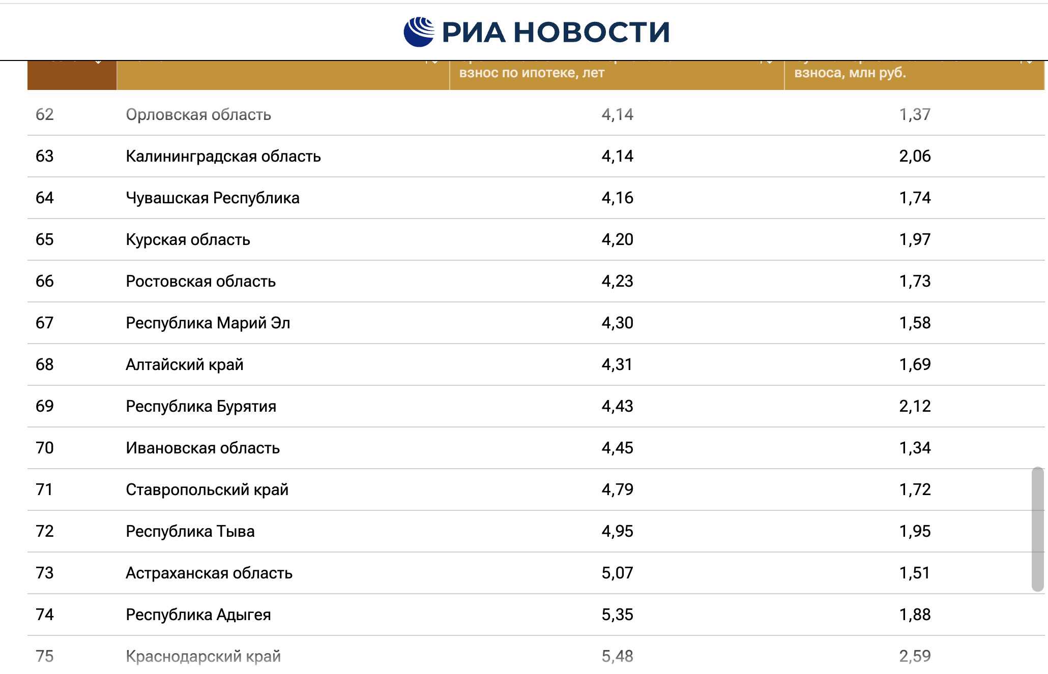 Наиболее длительные сроки накопления — в ряде южных регионов: в Чечне (9,08 лет), Дагестане (9 лет), Крыму (8,94 года) и Кабардино-Балкарии (8,43 года).