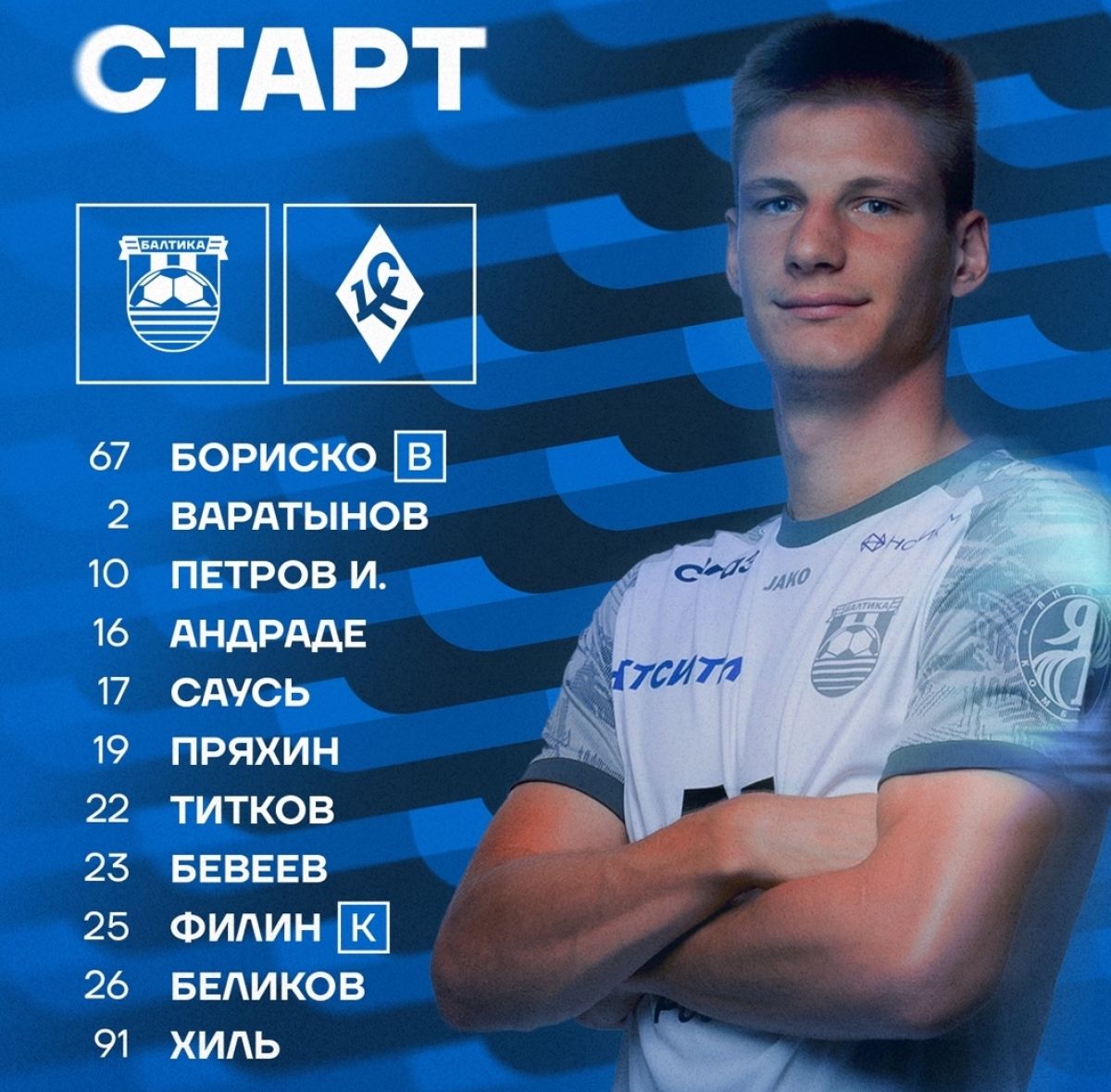 «Балтика» начинает матч против «Крыльев Советов»: состав команд