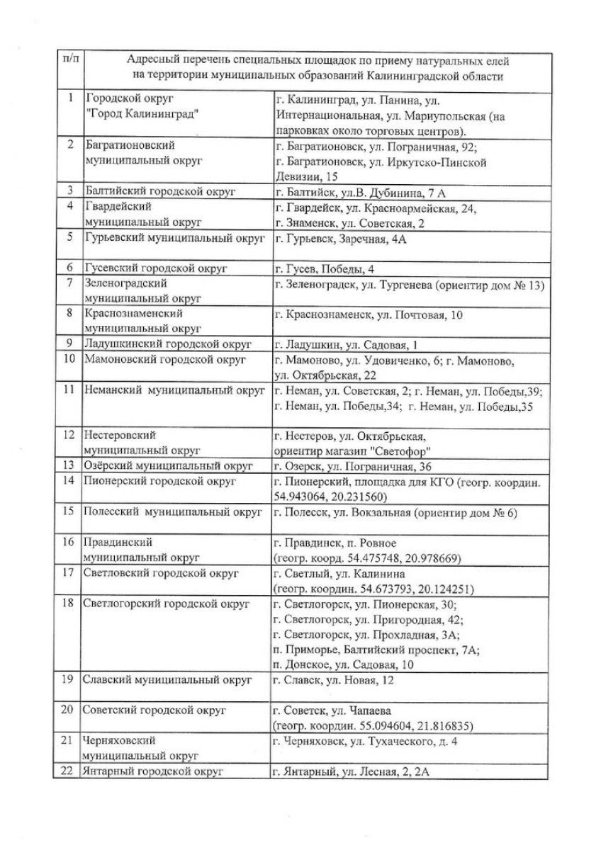 Для тех, кто не готов к экспериментам, есть традиционный способ. В Калининградской области работает 22 пункта приёма отслуживших новогодних деревьев для последующей переработки в щепу. В Калининграде открыты три специализированные площадки: на улице П. Панина, на Интернациональной улице и на Мариупольской улице (на парковках около торговых центров).