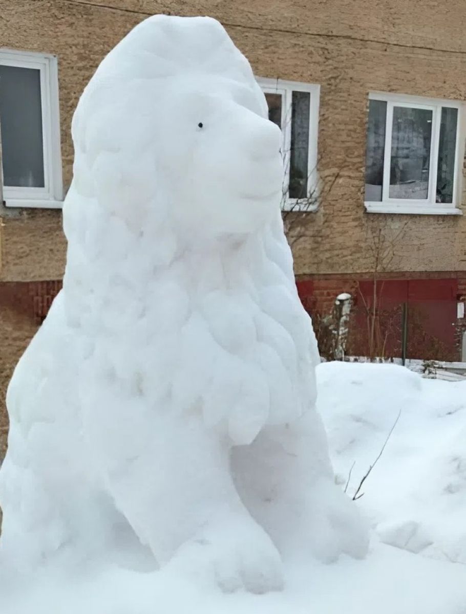 В Черняховске на улице Пушкина появились снежные скульптуры льва и баяниста