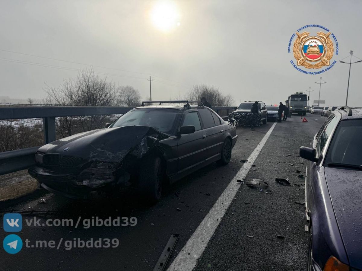 Утром в пятницу, 6 марта, на Приморском кольце в Гурьевском районе случилось крупное дорожно-транспортное происшествие. Около 08:20 на 20-м километре трассы столкнулись сразу девять автомобилей.