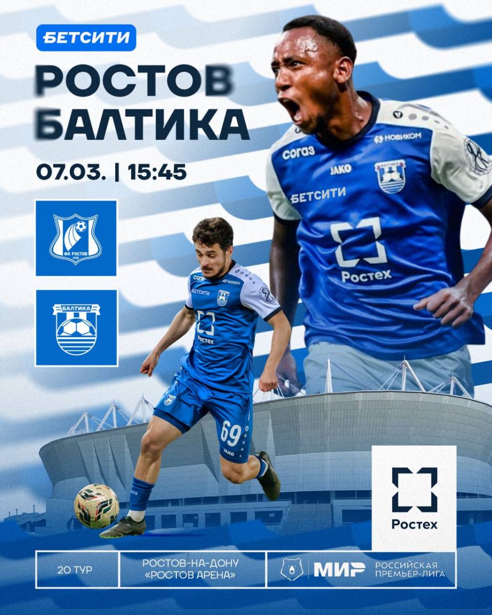 Сегодня, 7 марта, в 16:45 по московскому времени на «Ростов Арене» состоится матч 20-го тура Российской Премьер-Лиги, в котором местный «Ростов» примет калининградскую «Балтику».