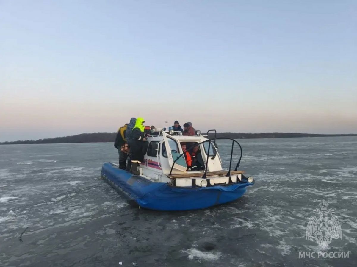 Но сначала пришлось спасать двоих рыбаков, которые провалились под лёд. Ещё одного мужчину эвакуировали с дрейфующей льдины.