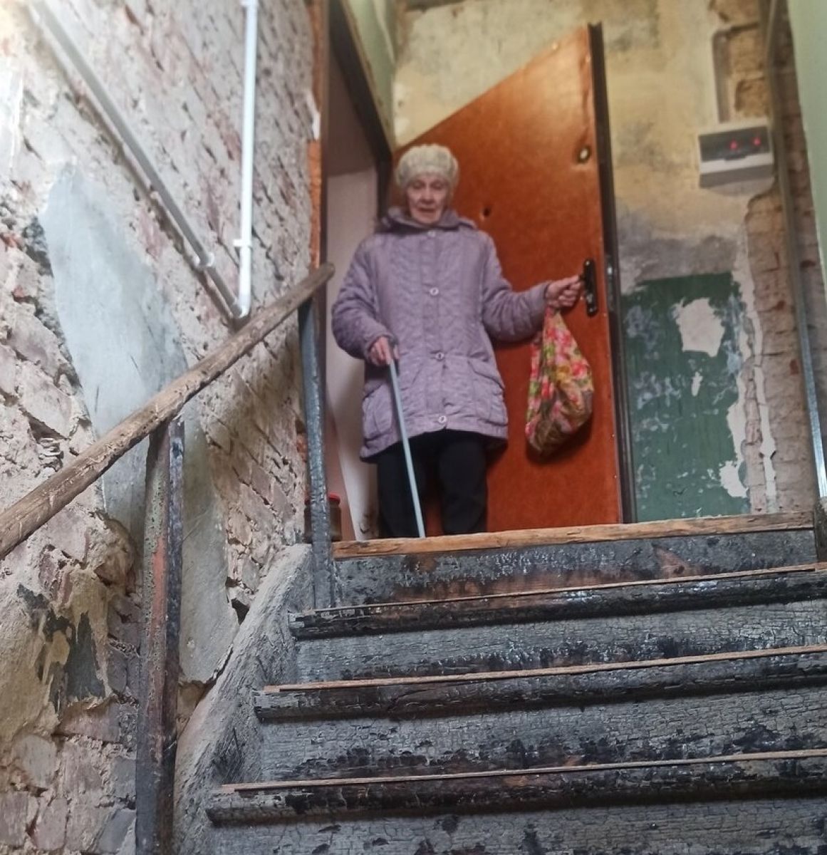 В Янтарном 94-летняя женщина рискует жизнью, поднимаясь по разрушенной лестнице дома
