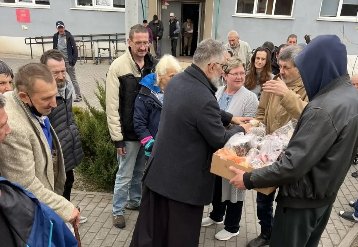 В Калининграде бездомных поздравили с Пасхой и вручили куличи и яйца