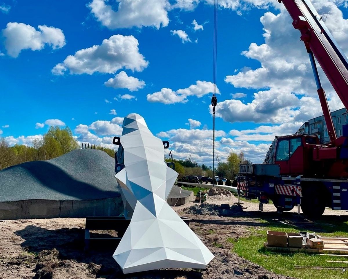 Высота композиции 7,2 метра. Монтаж начинается с устройства бетонного основания, после чего на него установят металлические детали. Все работы должны быть завершены до 30 ноября.