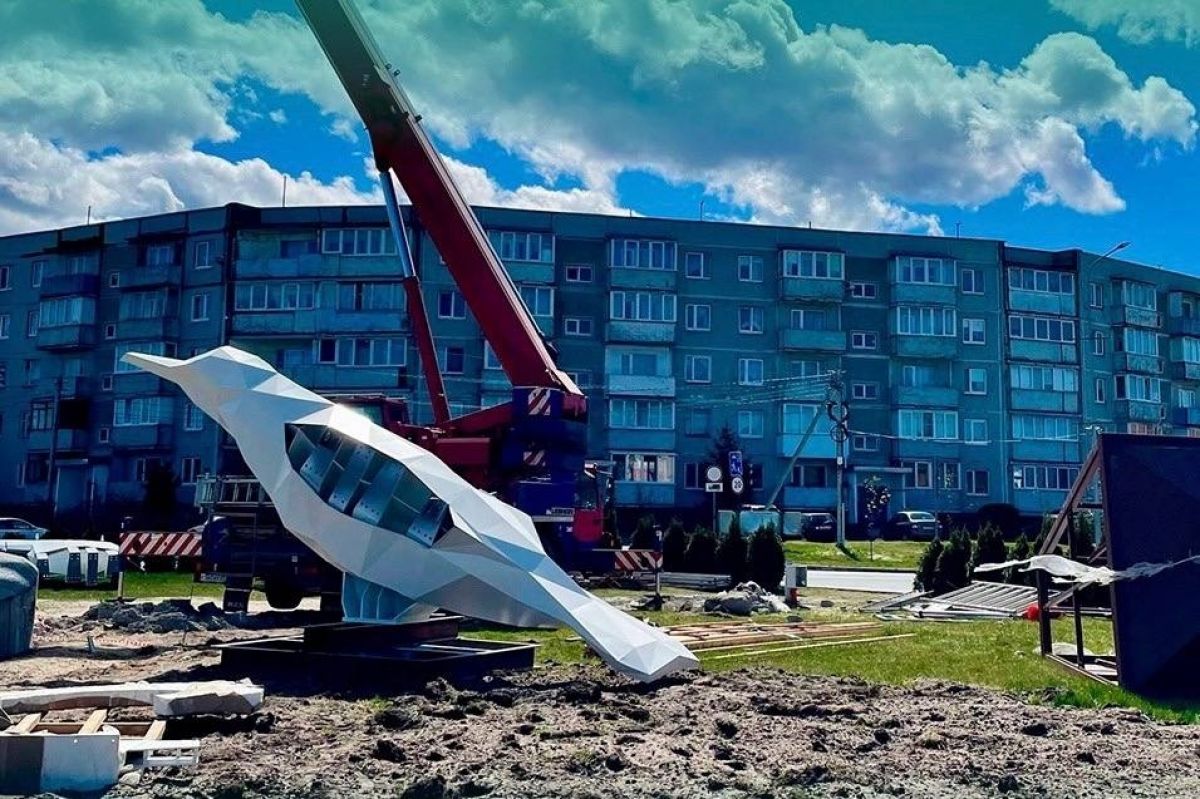 Город Светлый обзаводится новым узнаваемым ориентиром: на въезде монтируют масштабный знак с изображением чайки и фонаря на волне. Именно эти элементы составляют основу герба города, созданного художником Григорием Лерманом.